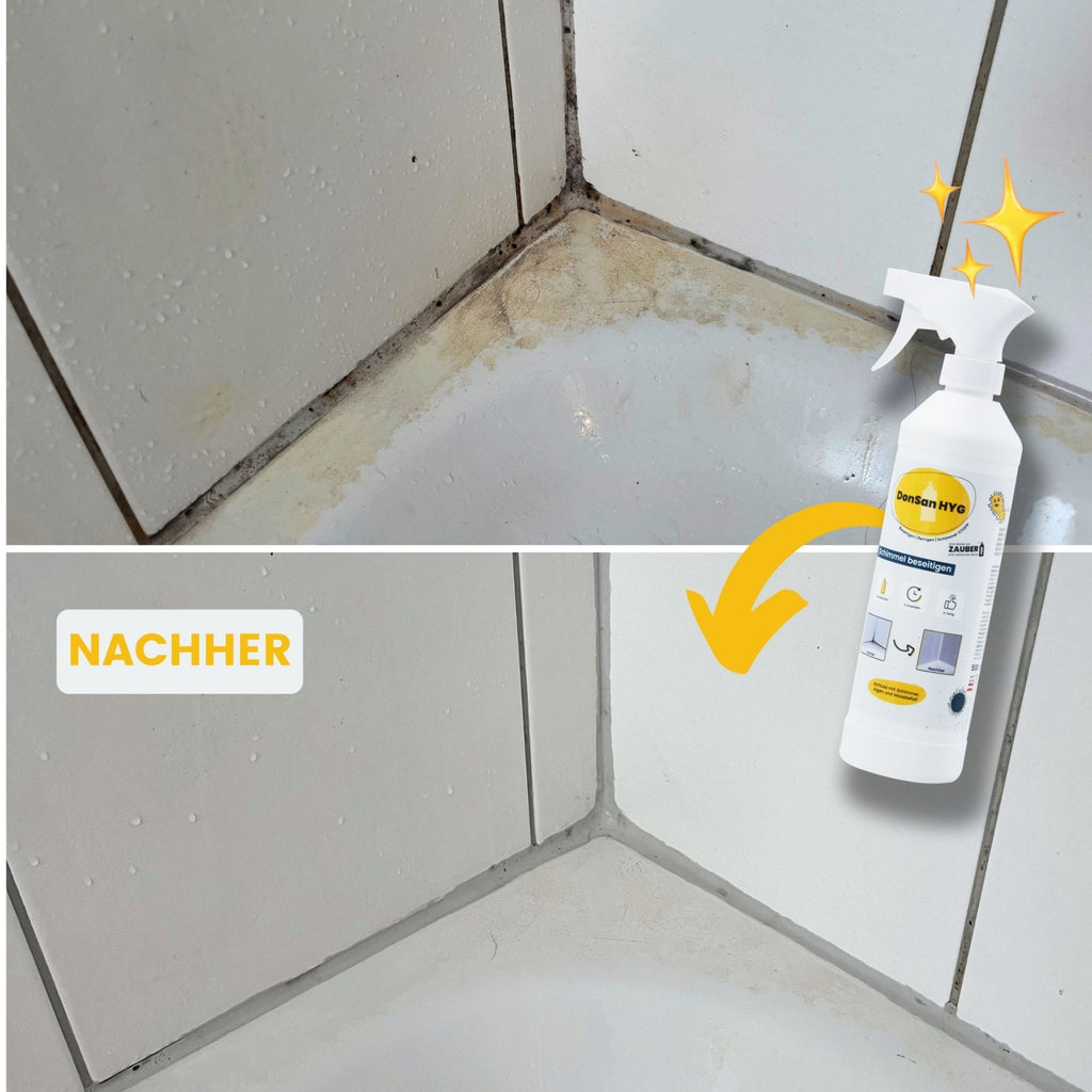 Der Schimmelbefall kann sowohl auf Fenstern, Mauerwerk als auch auf Duschwänden, Fugen mit Zauberfein behandelt werden.