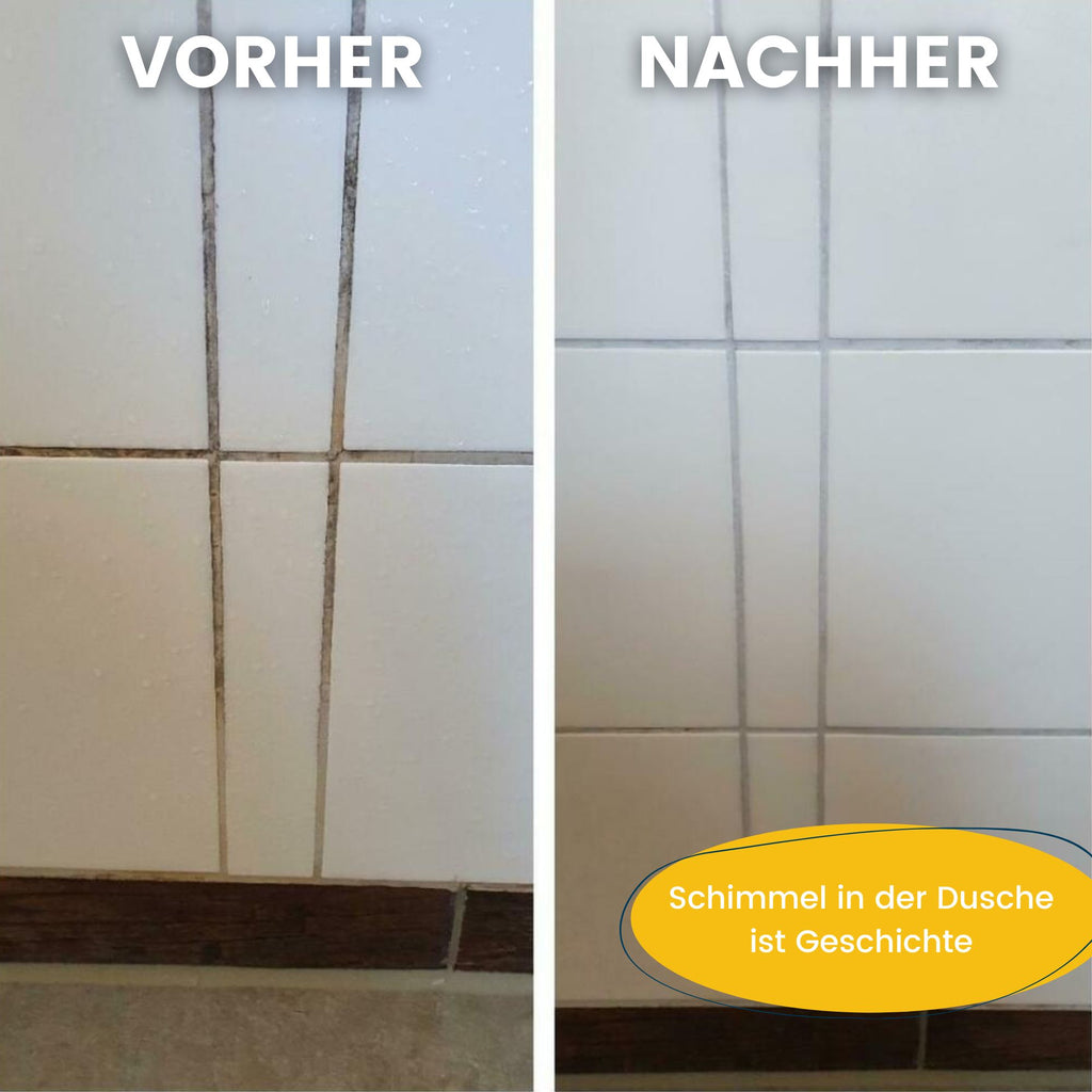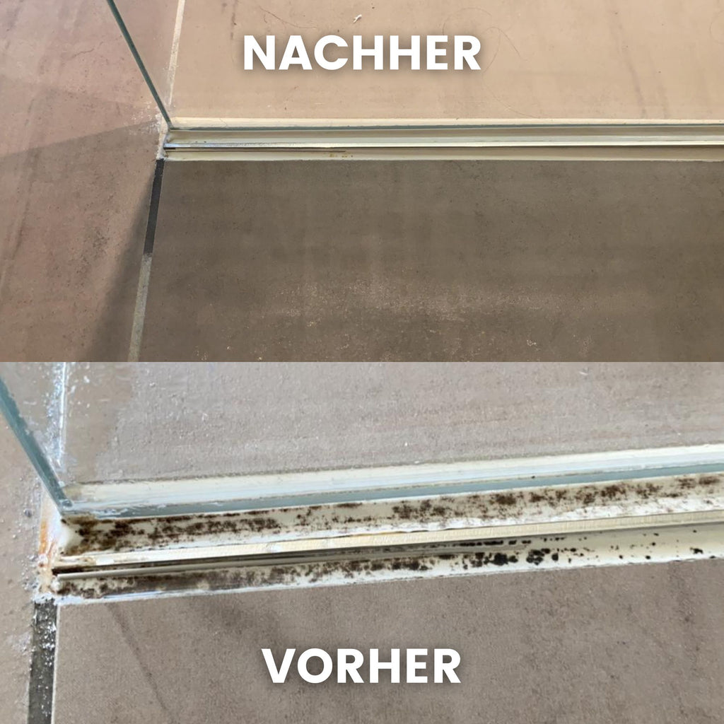 Sollte der Schimmel bereits etwas tiefer in die Fuge eingedrungen sein, kommt es vor allem auf den Zustand der Fuge an. Solange diese noch dicht ist, muss die Fuge in der Regel auch bei einem Schimmelbefall nicht komplett ersetzt werden. Hier reicht es oftmals bereits aus, die Fuge mit einem wirksamen Mittel gegen Schimmel zu behandeln. Wir empfehlen für diesen Fall unser Anti-Schimmel-Spray „Zauberfein“.